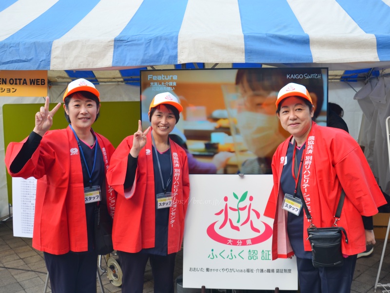 このイベントは、介護の仕事の魅力を発信することを目的としており、別府リハは、「ふくふく認証」制度の認証事業所としてこのイベントに参加しました。