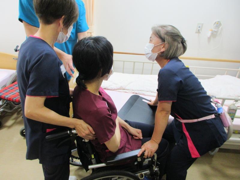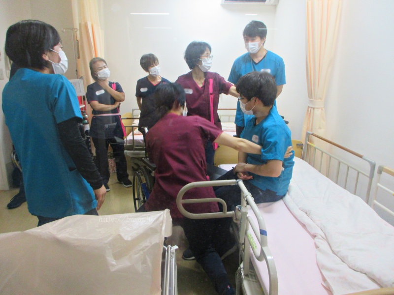 こちらは、重度の利用者さまを想定したトランスファー方法について、実技を交えておこなった勉強会の様子です。