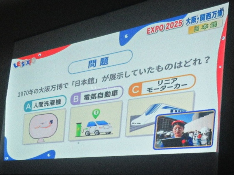 映像の中では「万博クイズ」もあり、過去に開催された万博に関する問題が出題されました。