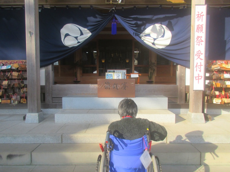 冬の澄んだ空気の中、境内は新年を迎えたばかりの清々しさに包まれ、利用者さまもどこかワクワクしているようでした。