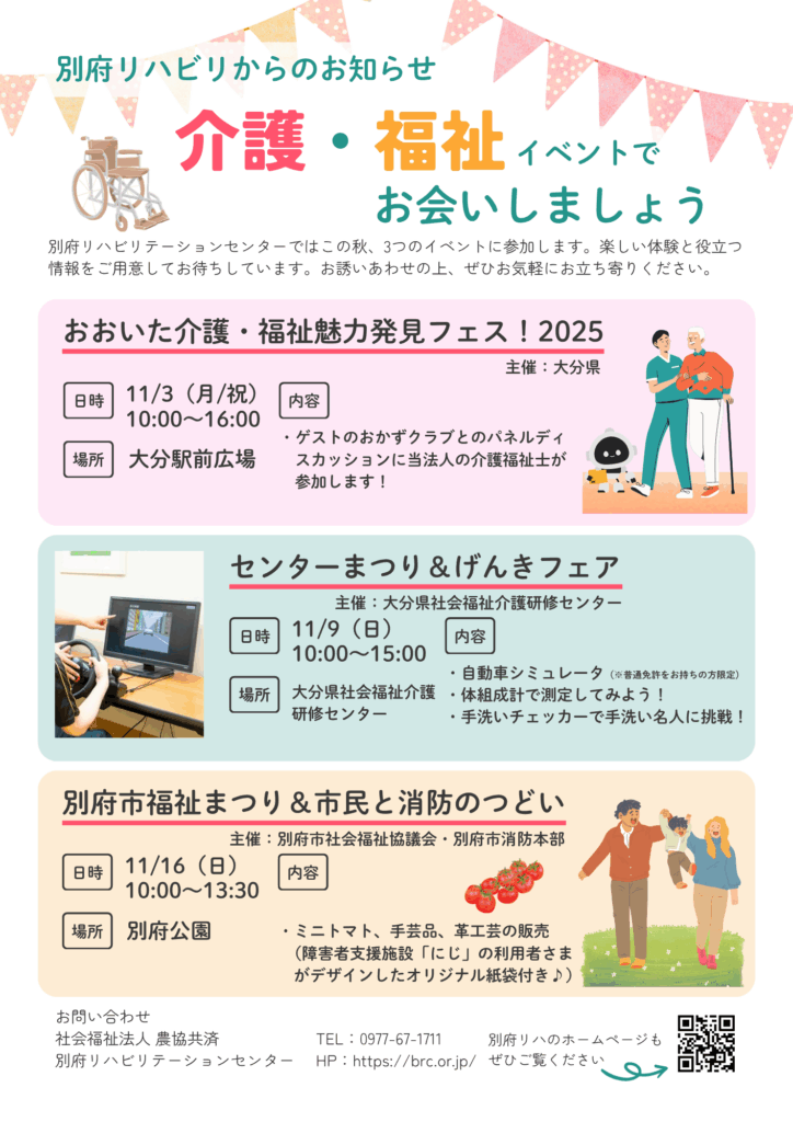 ぜひ「2025別府市福祉まつり&市民と消防のつどい」の別府リハのブースにお立ち寄りください。